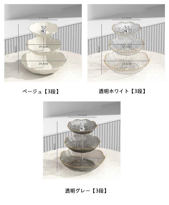 | 全3色*3タイプ選べる クマのハンドル付き2/3段ケーキトレイ レイヤードデザインにより、臭い移りを心配することなく果物やスナックを保管でき、一目で明確で取りやすいです。 クマの形をしたハンドル、見た目も可愛くて持ちやすい 高品質のPET素材を使用しており、手触りが快適で、お手入れが簡単で、より安全に使用できます。 | |