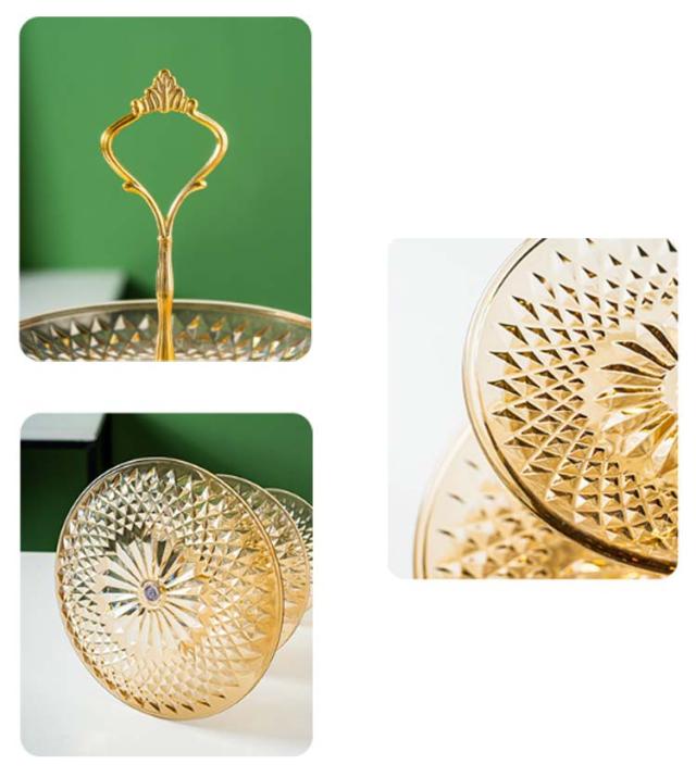 | ダイヤモンド3段ケーキトレイ レイヤードデザインにより、臭い移りを心配することなく果物やスナックを保管でき、一目で明確で取りやすいです。 ゴールドのハンドル、高級感とエレガントな外観、持ちやすい 高品質のPET素材を使用しており、手触りが快適で、お手入れが簡単で、より安全に使用できます。 | |