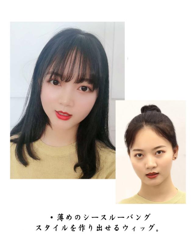| ・超軽量!夏にもおすすめ!簡単ワンタッチ装着のシースルーバング ・ナチュラルスタイルに仕上がる、前髪ウィッグが新登場。 ・薄めのシースルーバングスタイルを作り出せるウィッグ。 ・長めのサイド毛付きで、地毛との境目が目立ちにくいのもポイント。 ・ワンタッチでパチンと髪の根元に留めるだけ。一瞬で簡単に装着できます。 ・つむじから頭全体をふんわりカバーするような形で装着できるので、地毛との境目も目立たずとてもナチュラル。 ・とても軽くてムレる心配もなく快適にご使用いただけます。 | |