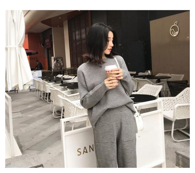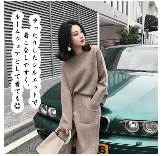 | パンツスタイルのニットセットアップ。 ゆったりしたシルエットで着こなしやすく。 ルームウェアとして着ても◎ | |