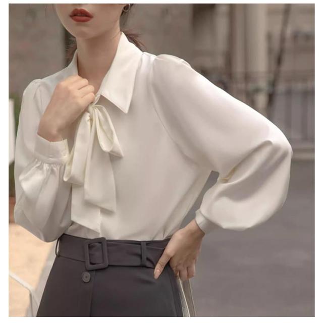 | ・ジャケットインに映えるボウタイブラウス ・普段使い、セレモニー、ビジネスなど どんなシーンでも着回し可能なブラウス。 | |