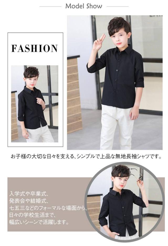 子供シャツ ワイシャツ キッズ 長袖 コットン キッズ 白 襟付き 子供 制服 ホワイト シャツ スーツシャツ 無地 シンプル トップス 春秋 男女兼用 110-180cm 黒 ブラック