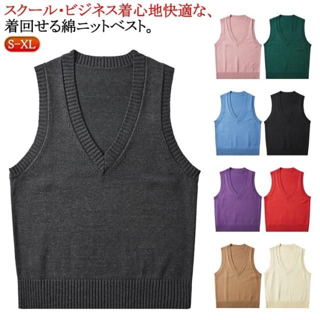 夏 中校生 女子 制服 トップス Vネック ベスト 入学準備 コットン 春 通学 高校生 スクールベスト 学生服 スクールセーター 女の子 ニットセーター 二ットソー 女子高生 無地 カジュアル コスプレ 入学式 卒業式 仮装 発表会 文化祭 学校 スクール