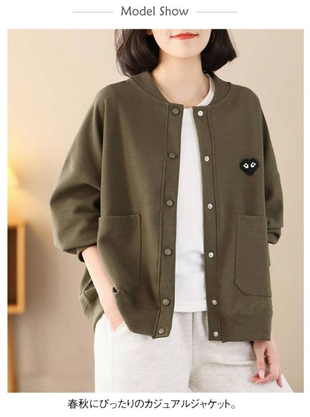 フード付き アウター スタジアムジャケット レディース カーディガン ベースボールジャケット カーディガン ゆったり 羽織り 婦人服 長袖 春服 春物 30代 40代