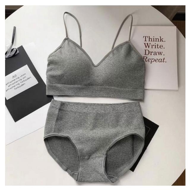 スポーツブラ 女の子 ストレスフリー パッド付き キャミソール 無地 下着 セットアップ ブラジャー&ショーツセット ジュニアブラジャー シンプル ノンワイヤーブラ キャミソール 学生 フィットネス ヨガ 運動 快適 ブラジャー&ショーツセット 育乳ブラ 中学生 レディース
