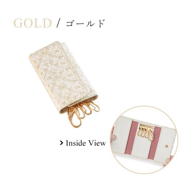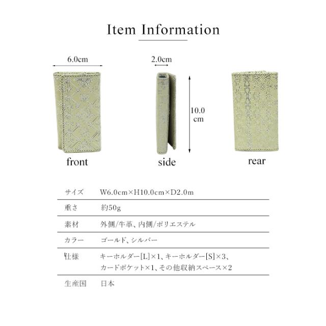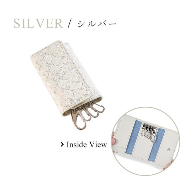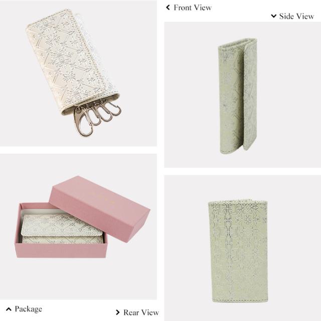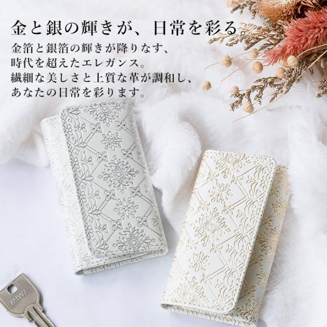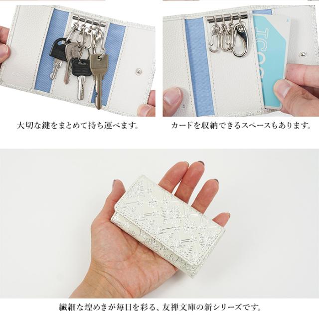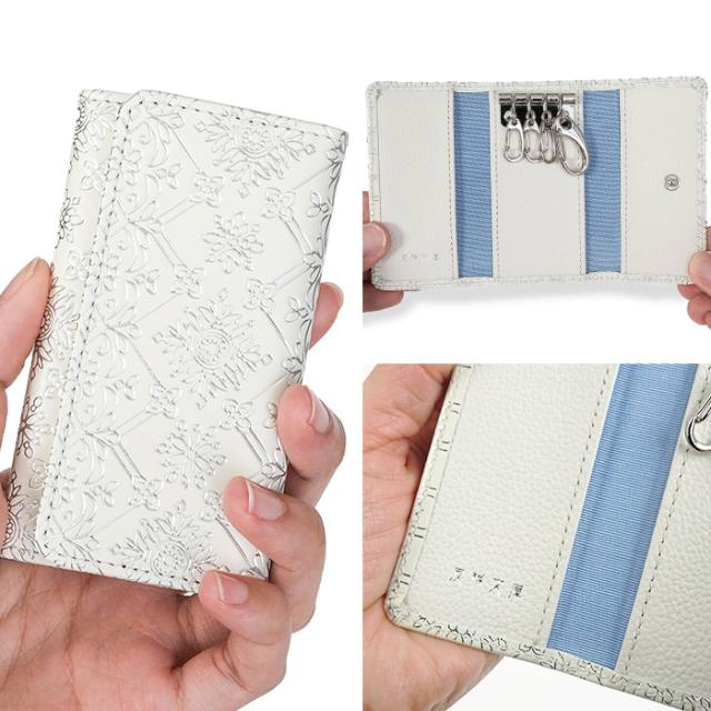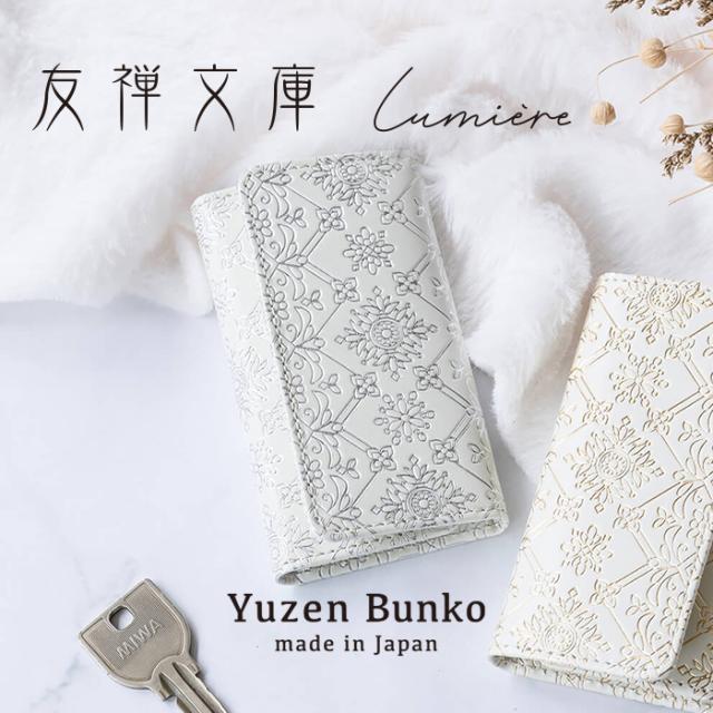友禅文庫 キーケース 三つ折り 鍵ケース キーホルダー 日本製 手作業 花柄 白 おしゃれ エレガント 革 プレゼント 誕生日 母の日 Lumiere【リュミエール】