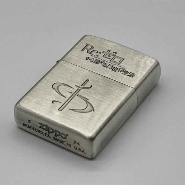 「Re:ゼロから始める異世界生活」よりZippoの新デザインが登場! 表面にはキャラ クターのモチーフアイコン、裏面にはキャラクターをデザインしました! 加工:銀サテン古美両面エッチング+色入れ。 素材:真鍮(米国Zippo社製)。 サイズ:H5.5×W3.8×D1.2(cm)。 ZIPPO社保証書、専用ケース。※撮影用台座は付きません。