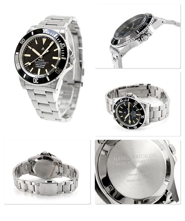 正規品 ナバルウォッチ 日本製 メンズ 腕時計 FRXE001 NAVAL WATCH Naval Watch Produced By LOWERCASE Sweep Second アナログ ブラック 黒 ◆NAVAL WATCH(ナバルウォッチ)は、1800年代にスイスのオトリブ市で生まれた腕時計のブランドです。1918年にはスイスの腕時計工業史誌に「ミリタリーウォッチに不可欠ともいえる夜光塗料付きの文字盤を搭載した時計を生産するメーカー」として記載された歴史があります。現在では、ヴィンテージやミリタリーをデザインモチーフとしたウォッチコレクションを展開しています。 FRXAモデルをベースに、ノンデイト化(日付窓無し)、逆回転防止機構付ダイバーベゼルを追加したSweep Quartz Diverモデル。文字盤はヴィンテージ仕様の日焼けしたようなカラーを蓄光塗料で表現しました。