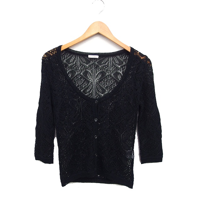 【中古】ジュエア ラ プーペ Jouer a la pupe かぎ針編み カーディガン 七分袖 クロシェ編み 2 ブラック 黒 /FT38