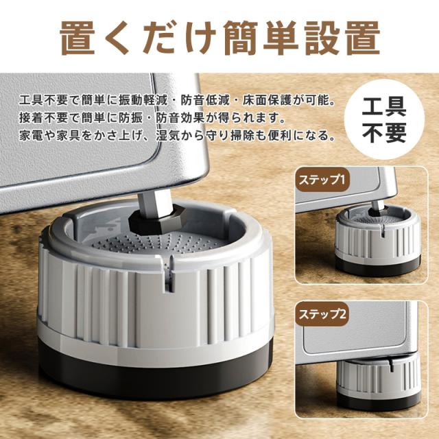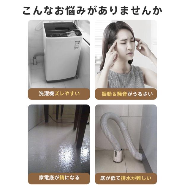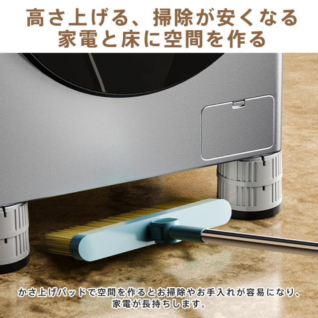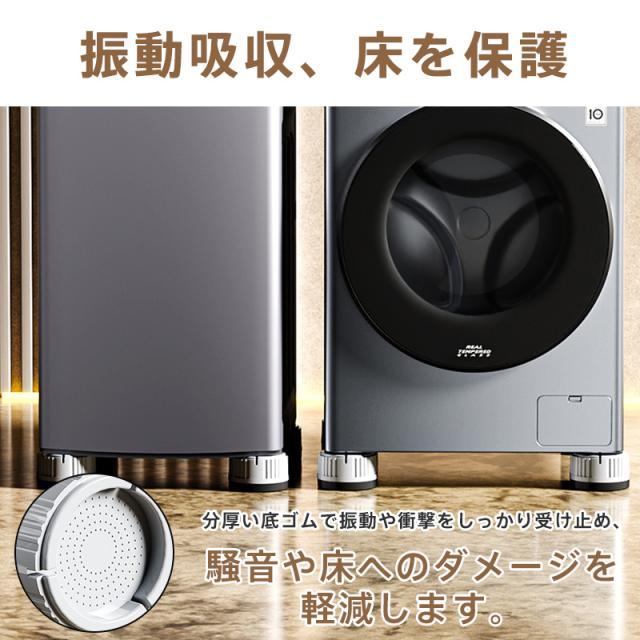 洗濯機用 防振かさ上げ台 底上げ防振ゴム 滑り止め 異音吸収 家具に傷防止 濯機置き台 乾燥機・冷蔵庫用 振動吸収 ソファー ベッド用 テーブル用 異音軽減 防音 取り外し可能 重ねて使用可 置き台 ゴム足 防音パッド 底上げ 騒音対策 ずれ防止 傷防止