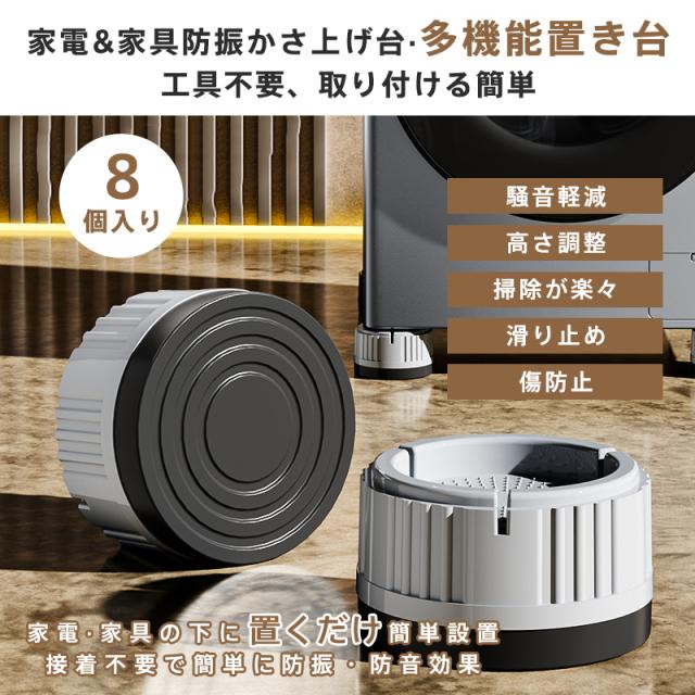 洗濯機 かさ上げ台 8個セット 高さ調節 底上げ 防振 振動騒音吸収 滑り止め 引っ越し 掃除 ズレ防止 水たまり防止 床に傷防止