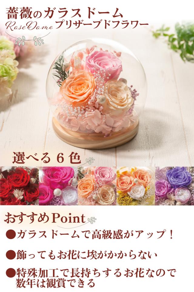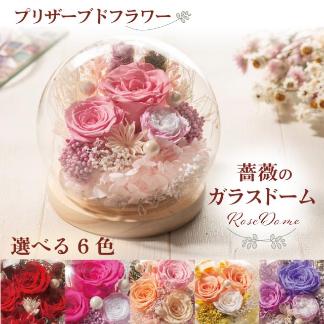 プリザーブドフラワー ギフト ガラス ドーム 置物 バラ アジサイ ドライフラワー プレゼント インテリア 玄関飾り 退職祝い お祝い お花 結婚祝い 結婚記念日 誕生日