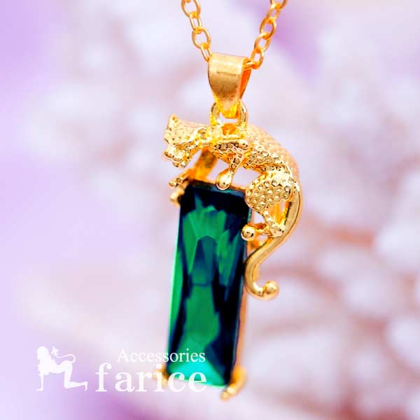 大粒石 バゲットカット 長方形 エメラルドグリーン 緑 CZ パンサー 豹 ゴージャス レディース ペンダント ネックレス
