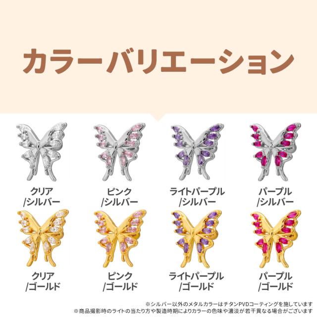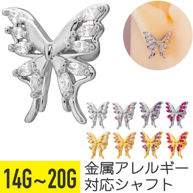 ビッグ バタフライ カラー ジュエル ストレートバーベル 14G 16G 18G 20G サージカルステンレス ヘリックス 軟骨ピアス ボディピアス 蝶