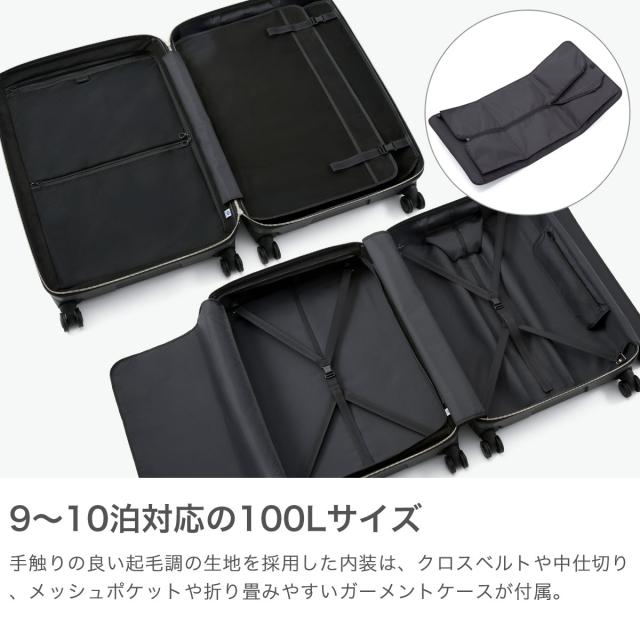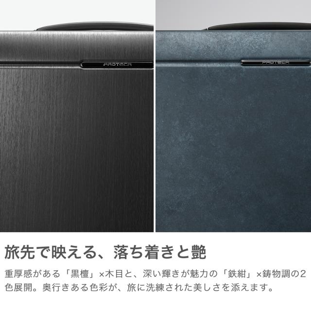 プロテカ スーツケース PROTeCA Lサイズ 100L キャリーケース 旅行 出張 ビジネス ストッパー付き 静音キャスター TSロック おしゃれ 10泊 1週間 日本製 高級感 J5 Collection シスイ 紺 ネイビー 鉄紺 ベアロンホイール サイレントキャスター ブランド 軽量 静音 TSAロック ジップ ファスナータイプ 高級 大人 上品 9泊 SHISUI キャリー キャリーバッグ 耐久性 軽い 使いやすい L 大きい 大きめ 大容量 100リットル 9〜10泊 1週間以上 国内 国内旅行 海外 海外旅行 長期 長期滞在 長期旅行 TSA TS 4輪 双輪 ハードケース ハード ファスナー ジップタイプ ストッパー キャスターストッパー MAGIC STOP マジックストップ 丈夫 黒檀 エボニーブラック 黒 ブラック ガーメントケース ガーメントケース付き ラゲージカバー ラゲージカバー付き トラベル オシャレ お洒落 シンプル かっこいい エース ACE 男性 女性 ユニセックス プレミアムケア10年保証 10年保証 保証 ファスナー式 TSAロックあり キャスター数4 オールシーズン TSAロック有