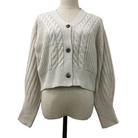 【中古】グレイル カーディガン ニット Vネック クロップド リブ ケーブル編み 長袖 F 白 ベージュ ホワイト