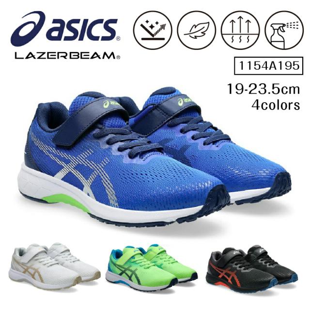 【即日発送】アシックス レーザービーム キッズ ジュニア スニーカー ゴムヒモ+1本ベルト タイプ 子供用 運動靴 運動会 ランニング マラソン 通学 走りやすい 歩きやすい 履きやすい 疲れない マジックテープ 軽量 1154A195 LEAZERBEAM RJ-MG-B 男の子 女の子 小学生 靴