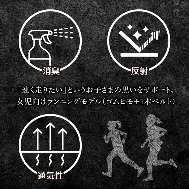 「速く走りたい」というお子さまの思いをサポート。女児向けランニングモデル(ゴムヒモ+1本ベルト)。