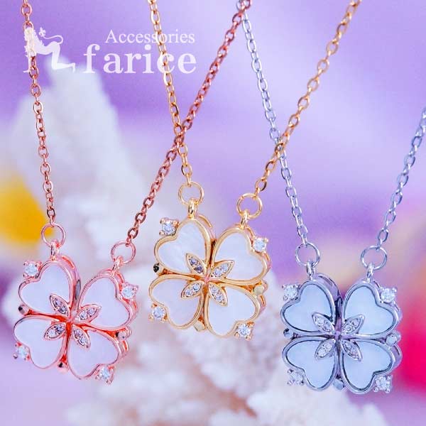 クローバー ネックレス ホワイトシェル 2way 四つ葉 4連ハート マグネット 磁石 ネックレス 【ピンクゴールド/イエローゴールド/シルバー】