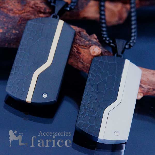 ・ワイルドなクロコダイル柄とマットメタルの異素材風プレートがクールなドッグタグネックレス 中心の光沢ラインが【ゴールド】または【シルバー】よりお好きな色をご注文ください