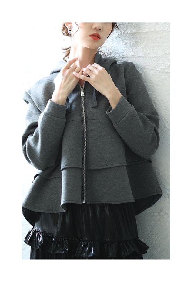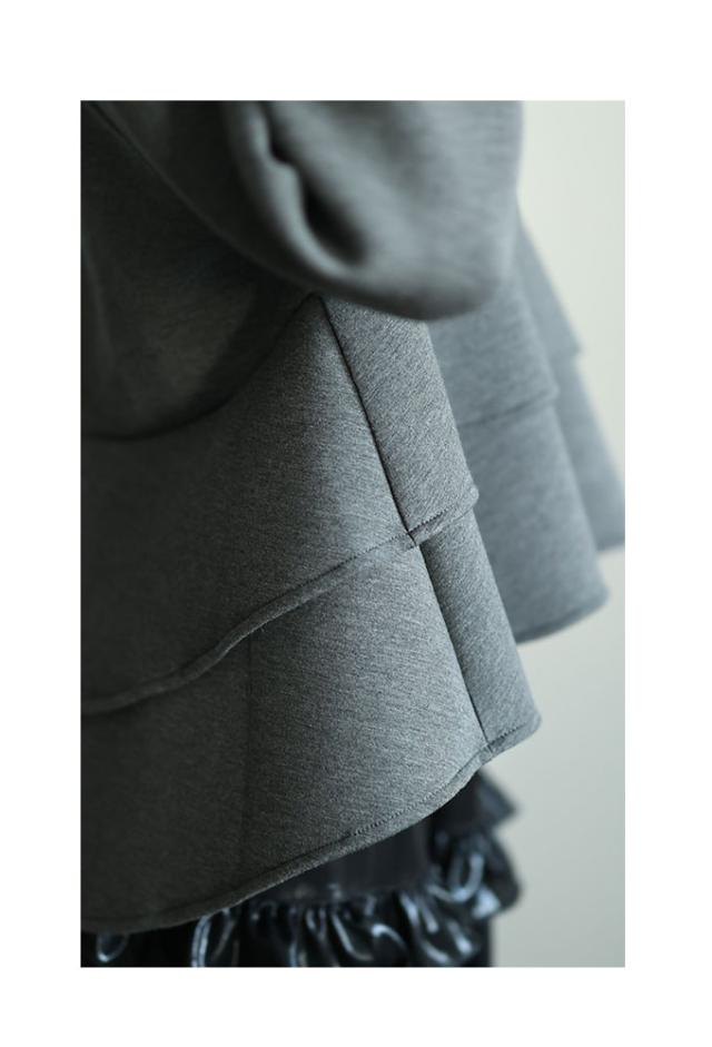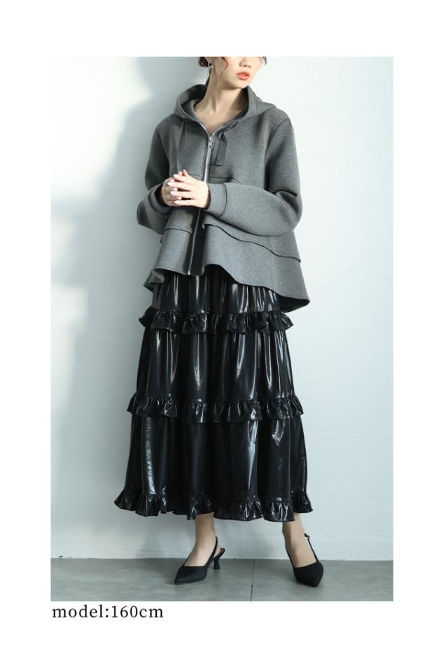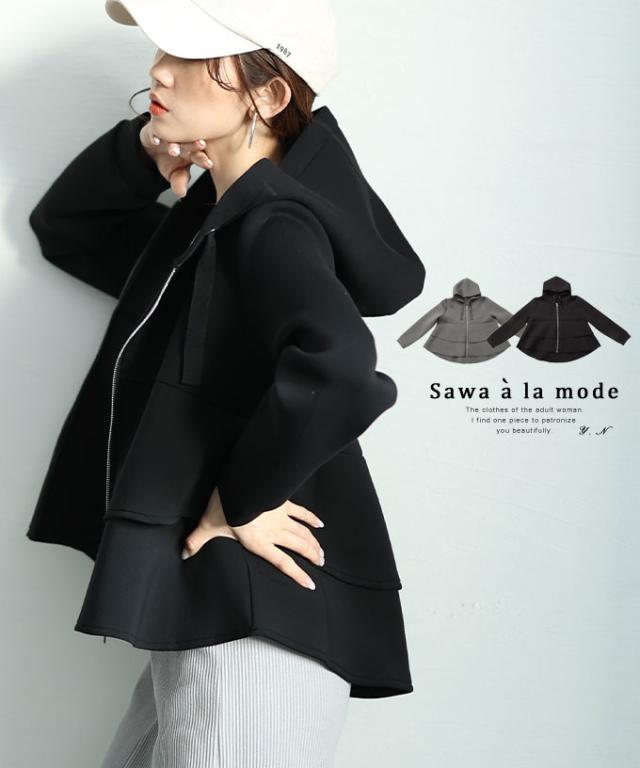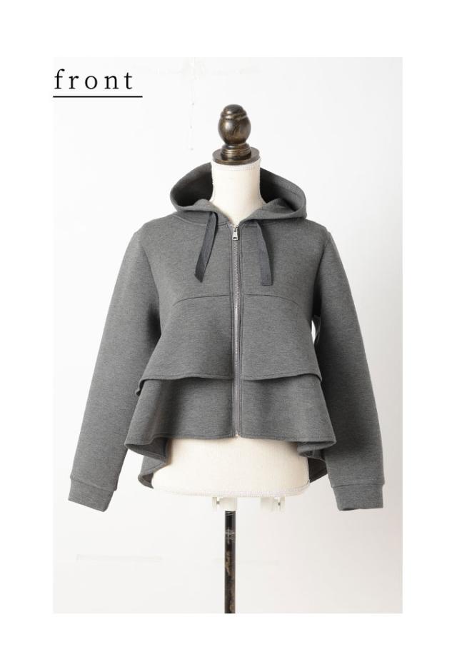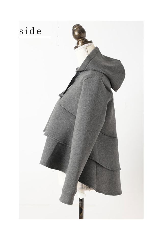 春新作 波打つドレープを描くティアードフリルダンボールパーカー レディース ファッション トップス パーカー 羽織り グレー 大人可愛い 40代 レディースファッション 50代女性 ファッション 60代 ミセスファッション サワアラモード sawaalamode otona almam-190406