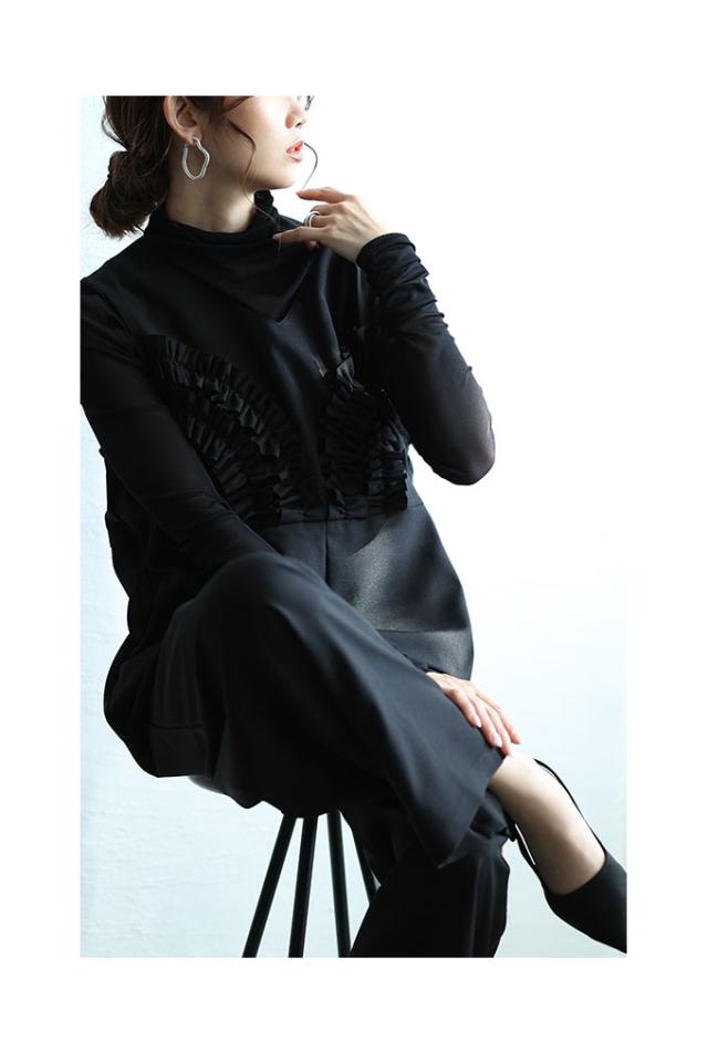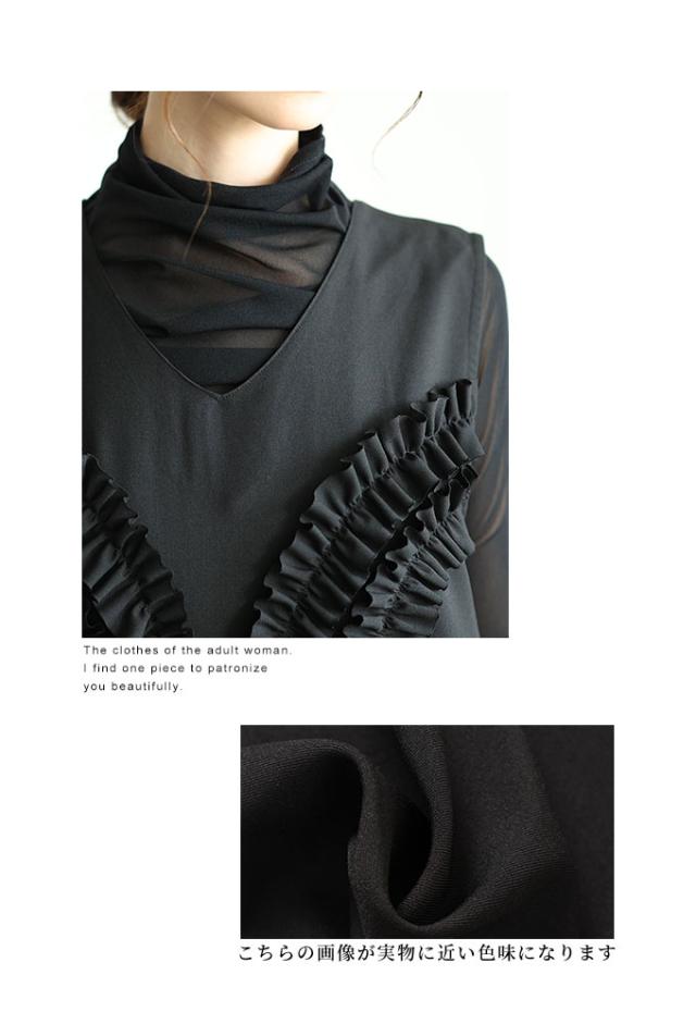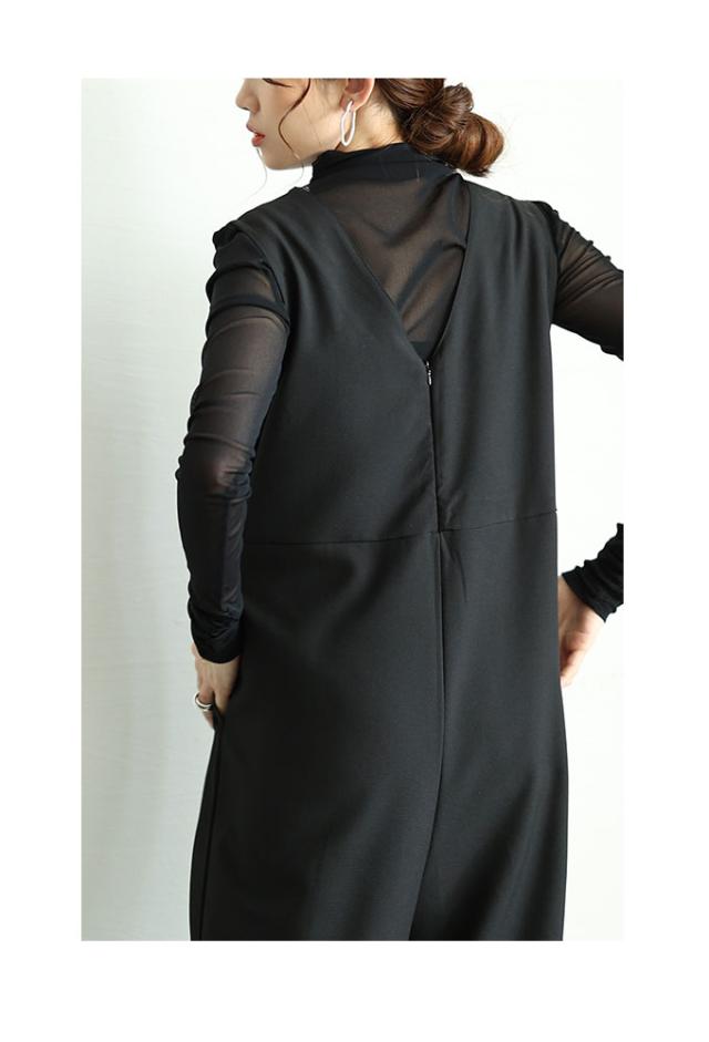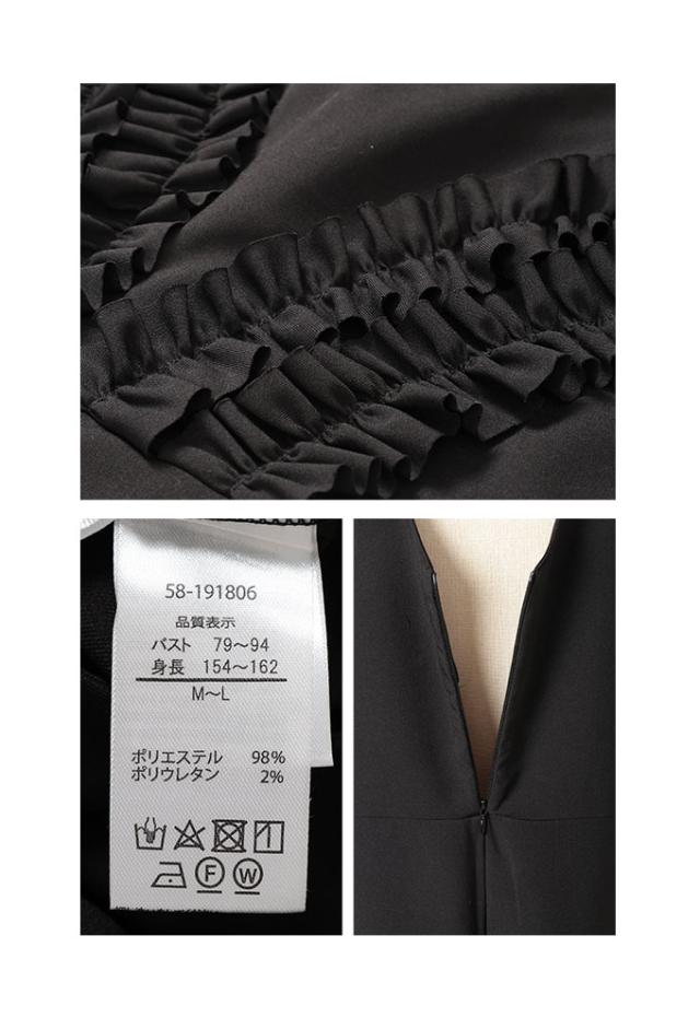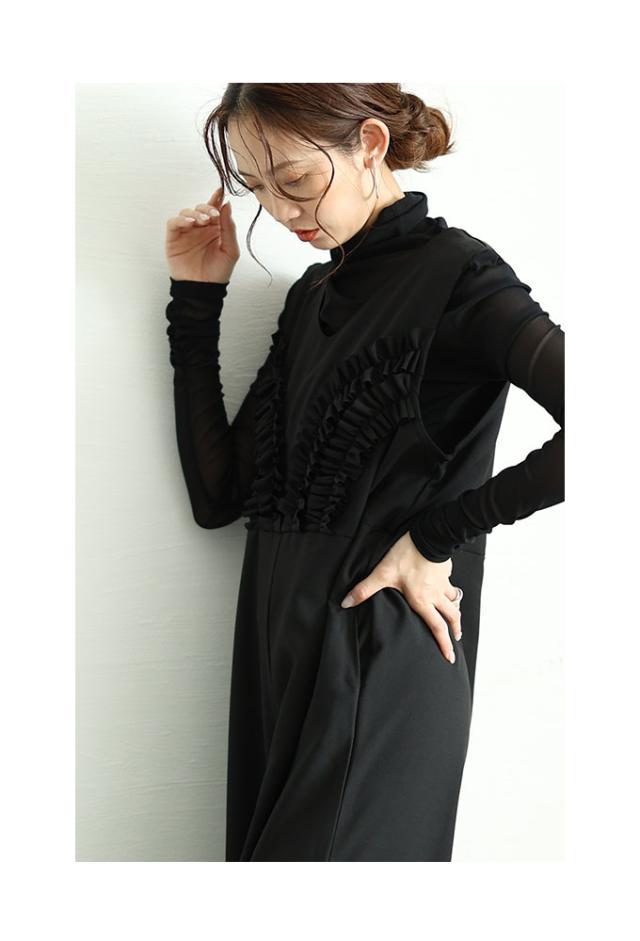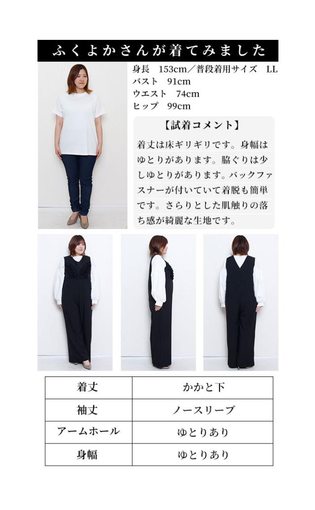 春新作 可愛らしさを添える胸元フリルのワイドレッグオーバーオール レディース ファッション ワンピース オーバーオール 黒 春 大人可愛い 40代 レディースファッション 50代女性 ファッション 60代 ミセスファッション サワアラモード sawaalamode otona almam-191806