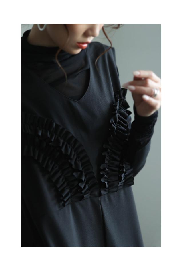 商品名: 胸元フリルのワイドレッグオーバーオール