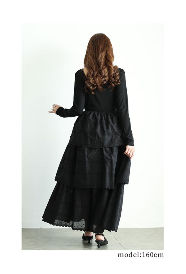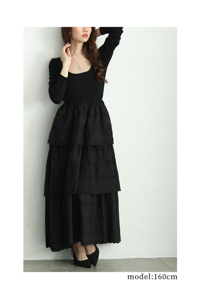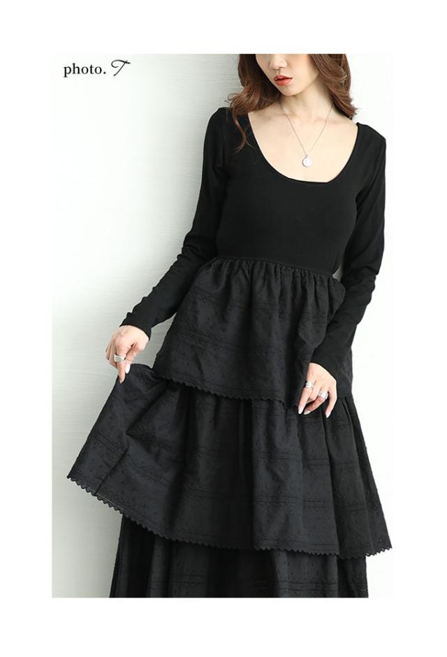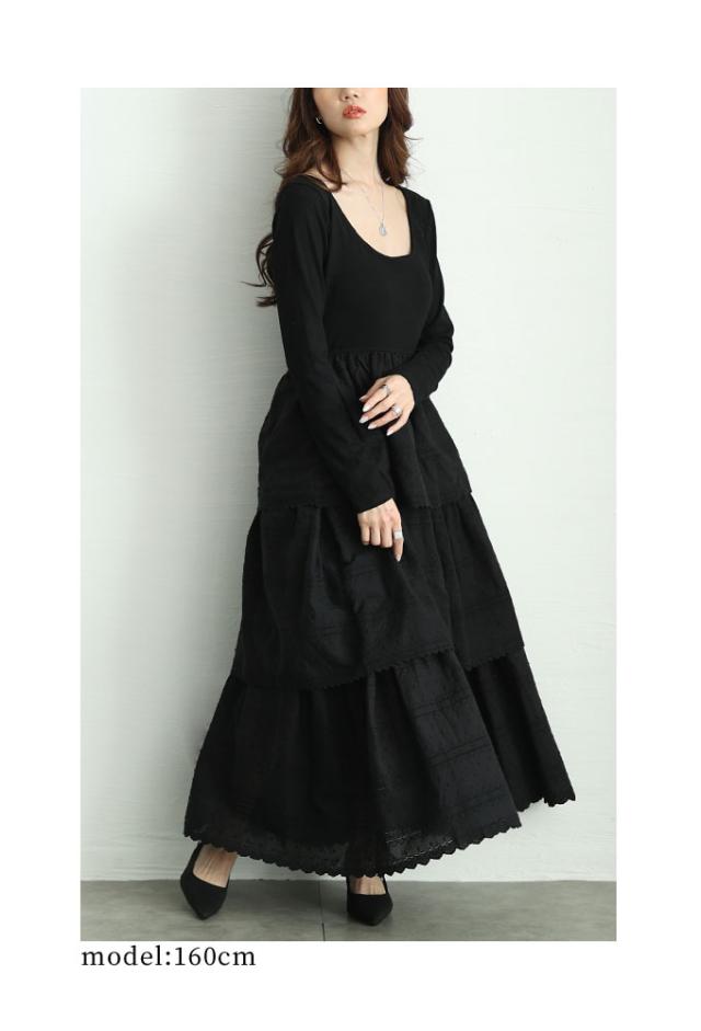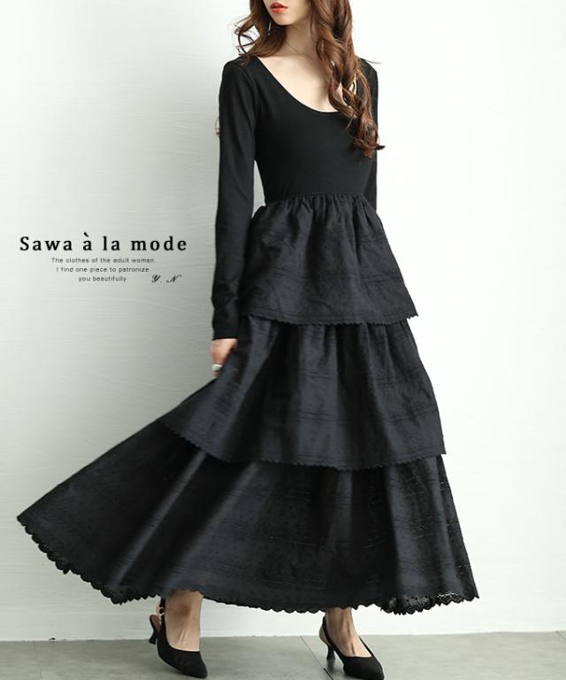 春新作 1枚で決まるコットンティアードが靡くドッキングワンピース レディース ファッション ワンピース ワンピ ブラック 黒 春 大人可愛い 40代 レディースファッション 50代女性 ファッション 60代 ミセスファッション サワアラモード sawaalamode otona mode-9874