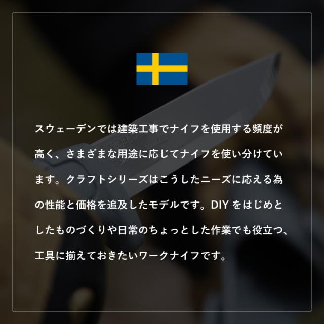 スウェーデン中部のモーラ地方で生まれた「モーラナイフ」は、130年以上の歴史を誇るナイフブランド。その品質はスウェーデンを代表する企業のみに与えられる王室御用達の認定を受けています。スウェーデン鋼による切れ味鋭いブレードや握りやすいグリップなど、良質な素材と高い技術力によって高品質なものづくりを実現する一方、機械化による大量生産を行うことで、リーズナブルな価格帯での販売を可能とし、スウェーデン国内のみならず、世界中で広く活用されています。アウトドア用以外にも、DIYなどのクラフト向けのナイフやウッドカービング用、キッチン用など、あらゆる用途に適したナイフを幅広く取り揃えています。
