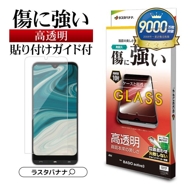 【送料無料】BASIO active3 ガラスフィルム 平面保護 高光沢 高透明 クリア 貼り付けガイド 0.33mm 硬度10H ベイシオ アクティブ KYG04 保護フィルム GP4818BAA3 ラスタバナナ