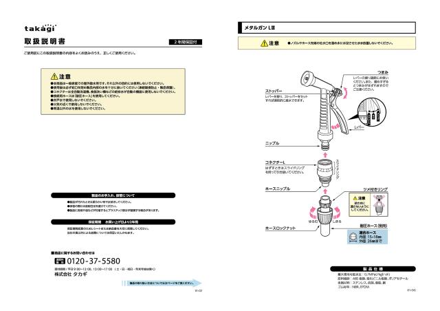 散水ノズル ホースノズル 金属製 頑丈 ホースリール 園芸 洗車 清掃 勢い 2水形 ストレート キリ カクサン ジェット タカギ takagi コネクター付き 公式 2年間保証 QG1140BK メタルガンIII ブラック ホース内径15-18mm/外径26mm
