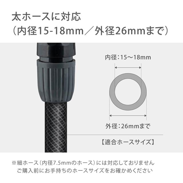 太ホース(内径15-18mm/外径26mm)に対応しています。