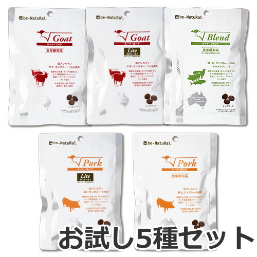 【メール便】【食べ比べセット】be-NatuRal(ビィナチュラル) ミニパック 5種セット ルート・ブレンド/ルート・ポーク/ルート・ポーク・ライト/ルート・ゴート/ルート・ゴート・ライト ヒューマングレード 送料無料