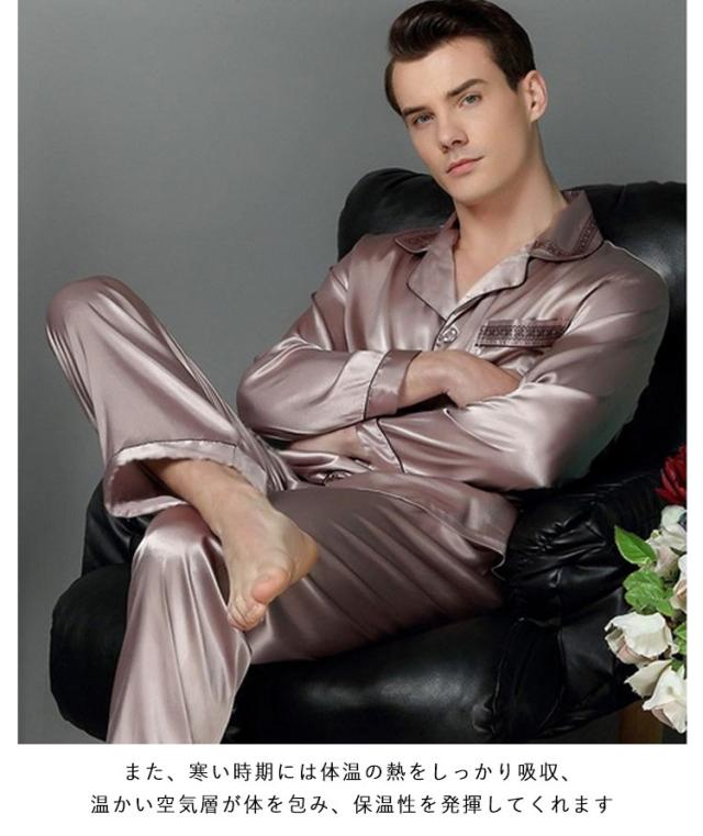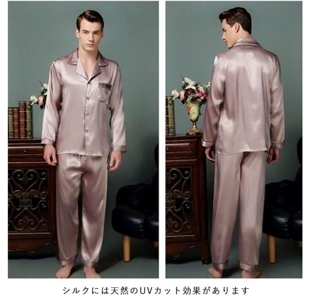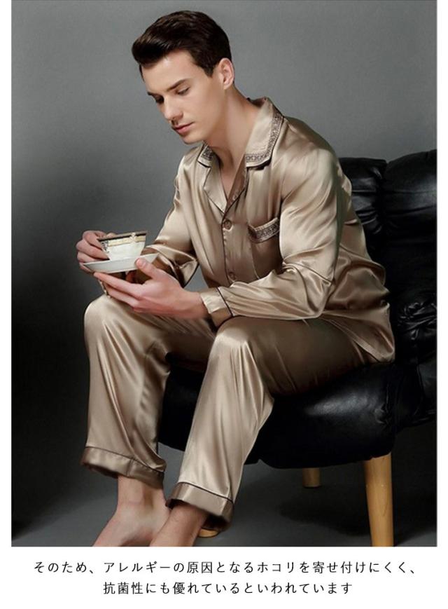 送料無料 メンズ パジャマ 上下セット シルクパジャマ 長袖 前開き シルク 敏感肌 襟付き ルームウェア 部屋着 ロングパンツ 高級 送料無料 男性 プレゼント