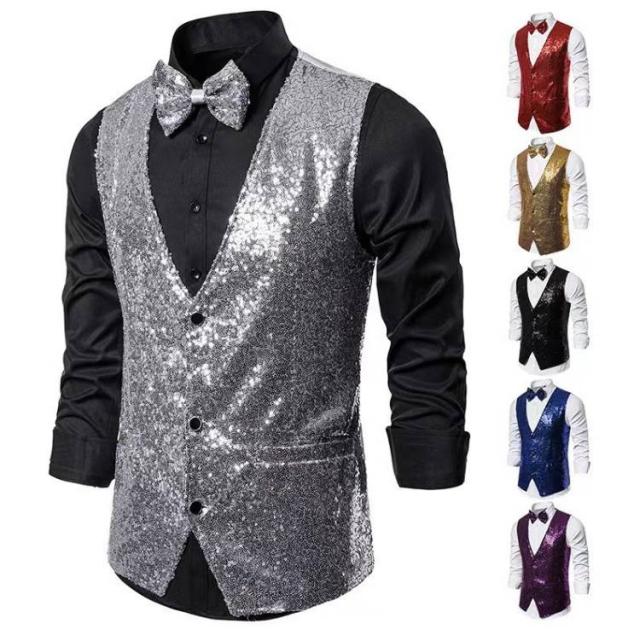 ジレ ベスト ヒップホップ ジレ キラキラ 音楽会 ジャズ衣装 スパンコール ダンスウェア スパンコールベスト 発表会 社交ダンス 司会者 写真撮影 ステージ衣装 ハロウィン コスプレ
