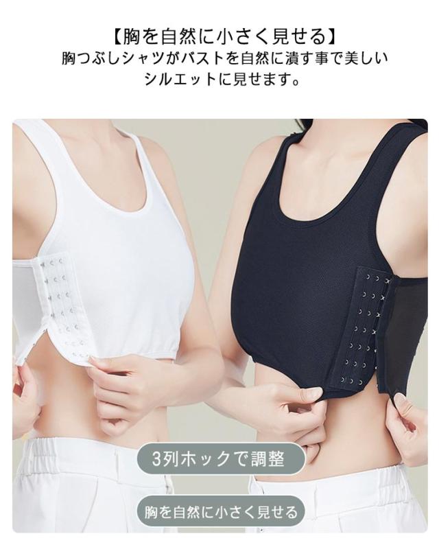 | 【着心地の良い素材】通気性の高いメッシュの使用と幅広く設計された肩の仕様で、着心地が良く長時間でも快適にご着用いただけます。 【胸を自然に小さく見せる】胸つぶしシャツがバストを自然に潰す事で美しいシルエットに見せます。 【3列ホックで調整】バストの抑え具合を3つのホックで調整が可能です。苦しくないよう好みの締め付け具合でご着用ください。 【こんな方におすすめ】胸が大きく太って見える、スポーツ時に揺れて痛い、自然にバストを小さく見せたい、コスプレ男装の衣装で使いたい。 | |