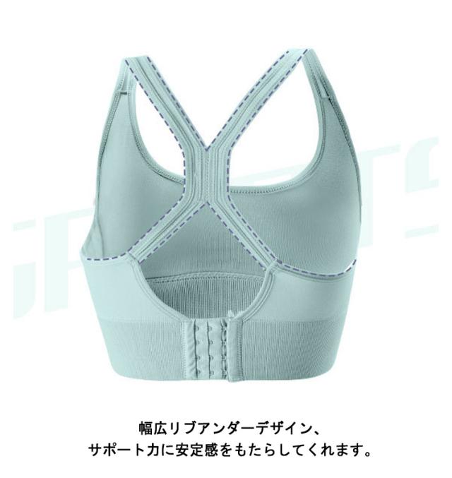 | 胸をしっかりホールドして、揺れにくいスポーツブラ。 ランニングなど激しい運動でも揺れないスポブラでスポーツに集中できる。 運動する際の胸の揺れを軽減しストレスを少なくし、快適に運動することができます。 4段階調整ホック付きで、日々変化する体型にもしっかりフィットしてくれます。 幅広リブアンダーデザイン、サポート力に安定感をもたらしてくれます。 おしゃれなクロスバックで見えてもかっこいいスポーツブラです。 | |