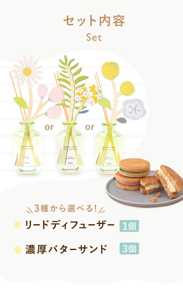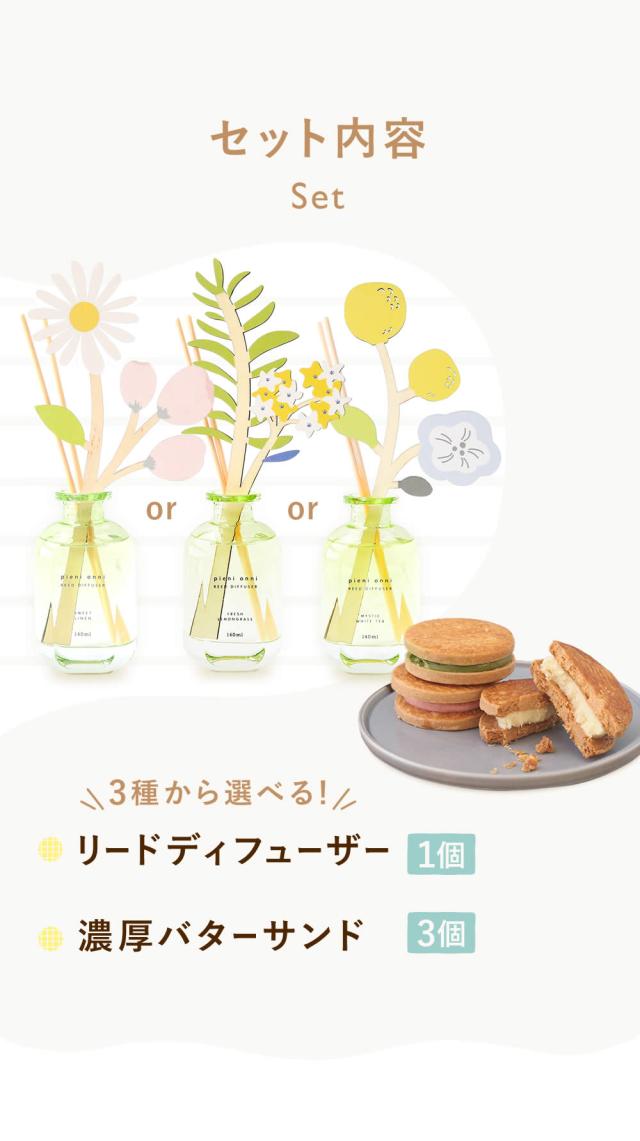 | 商品内容 | 選べるディフューザー1個 バターサンド3個セット |