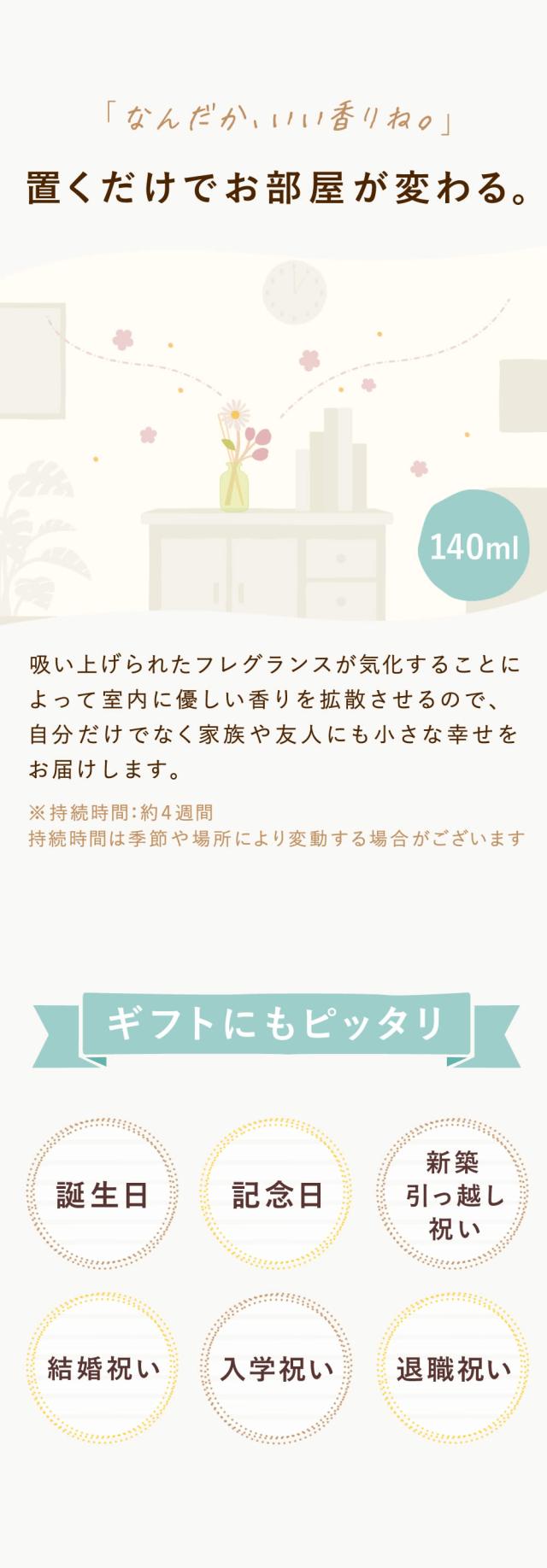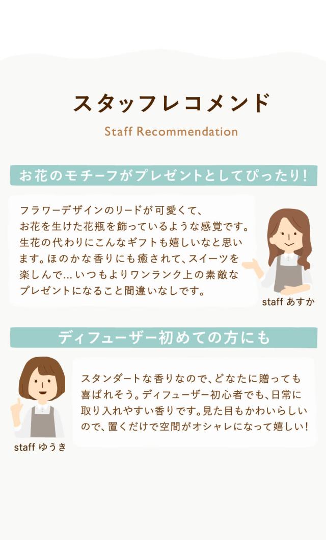 ふわっと広がる優しい香りのディフューザーは、贈り先のライフスタイルに合わせて