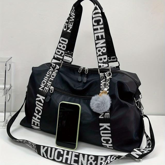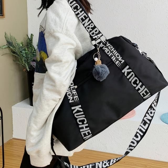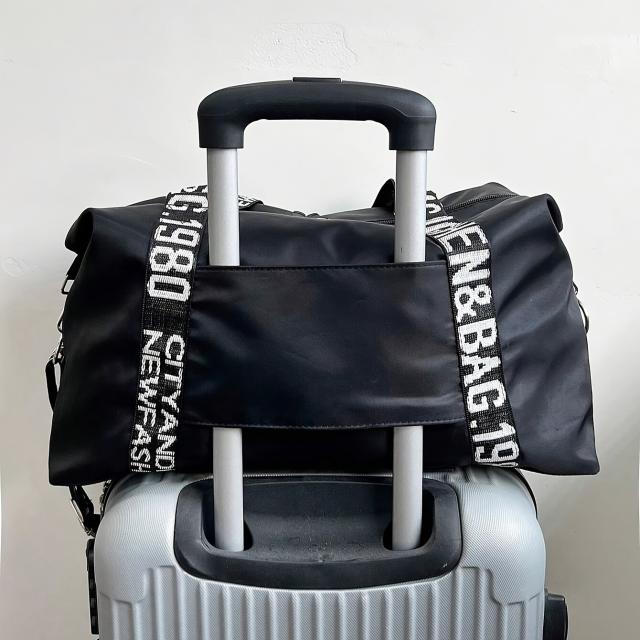 軽量折りたたみ旅行バッグ、大容量、調節可能ショルダーストラップ、黒