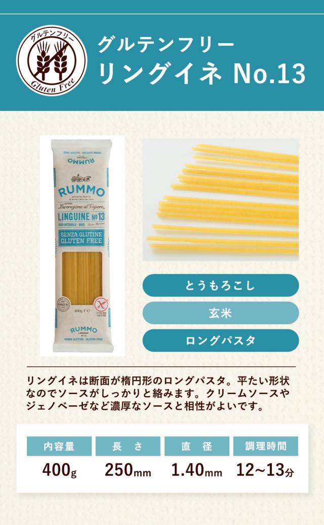 パスタ グルテンフリー リングイネ No.13 400g×2袋 送料無料 メール便 小麦粉不使用 アレルギー 玄米 とうもろこし RUMMO イタリア 直輸入