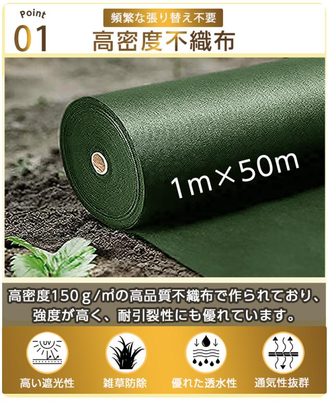超高耐久 防草シート 1mx50m 高密度150g 固定ピン付き 長期間敷き直し不要 不織布 除草シート 雑草シート 草刈り不要 砂利下 雑草防止 雑草対策