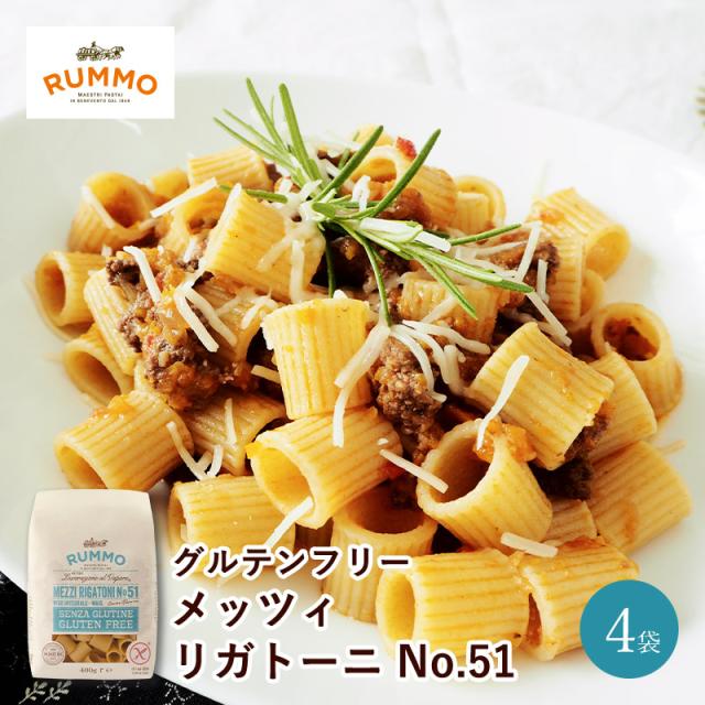 パスタ グルテンフリー メッツィ リガトーニ No.51 400g×4袋 送料無料 日付指定 小麦粉不使用 アレルギー 玄米 とうもろこし RUMMO イタリア 直輸入