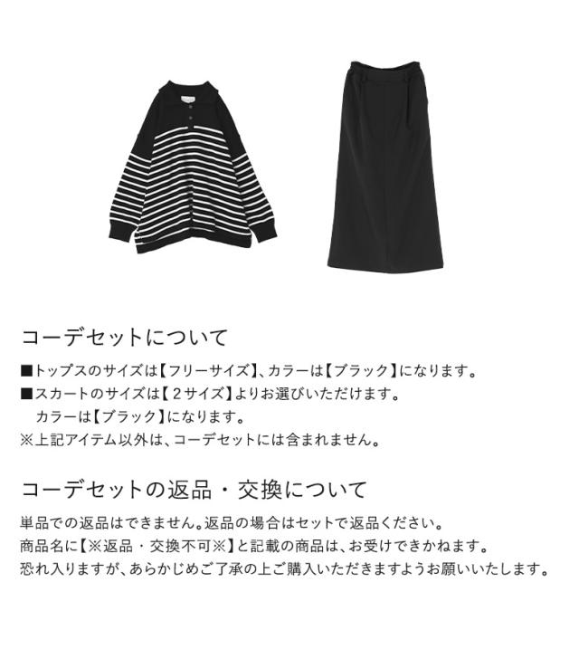 【送料無料】『パネルボーダーニットポロ×ツイルナロースカートコーデ2点SET』【メール便不可】【40】[2点コーデセット 2025 レディース ニット トップス 長袖 セーター スカート ボトムス ロング ナロースカート]
