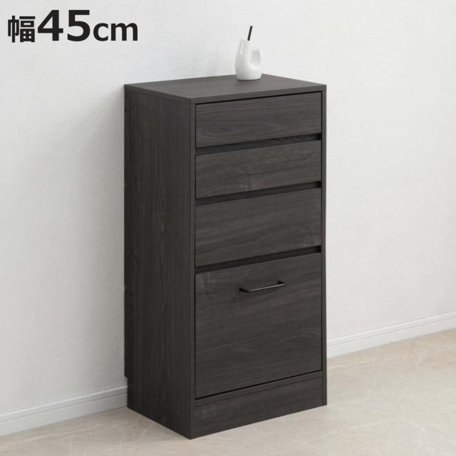 カウンター下収納 スリムチェスト 幅45cm 4段 黒木目 ( blacker チェスト 組み合わせ カウンター下 収納 薄型 奥行スリム 4杯 引き出し キッチン収納 スライドレール ブラック )