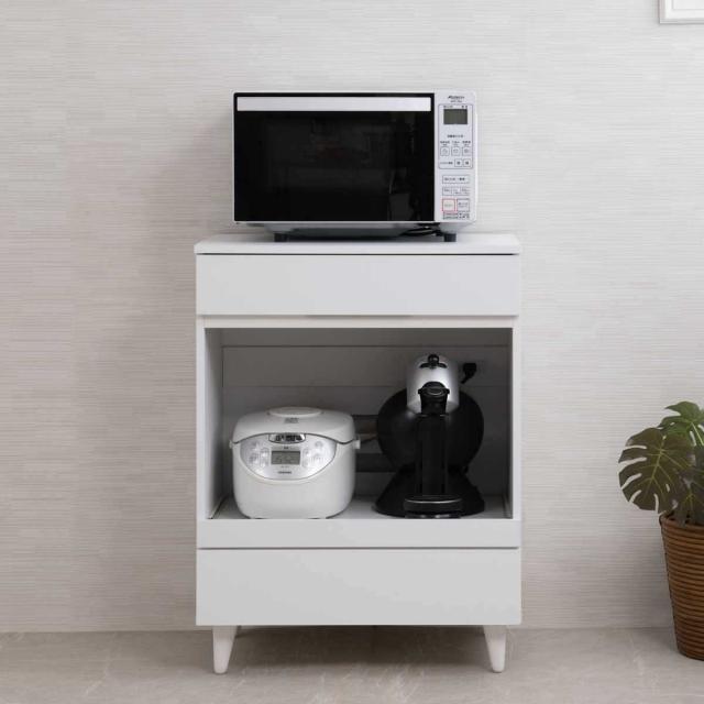 キッチンカウンター 幅60cm レンジ台 スライド棚 2口コンセント ホワイトリヴ ( Whiteliv カウンター レンジボード コンセント付 組み合わせ キッチン収納 ホワイト 引き出し シンプル )