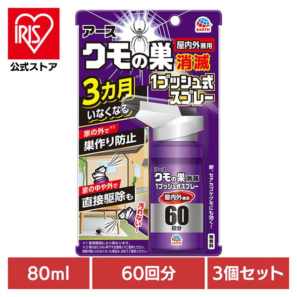 【3個】虫ケア用品 駆除・予防 蜘蛛の巣 アース クモの巣消滅 1プッシュ式スプレー 60回分 80ml アース製薬 あーす 消滅 クモ くも くもの巣 ワンプッシュ スプレー