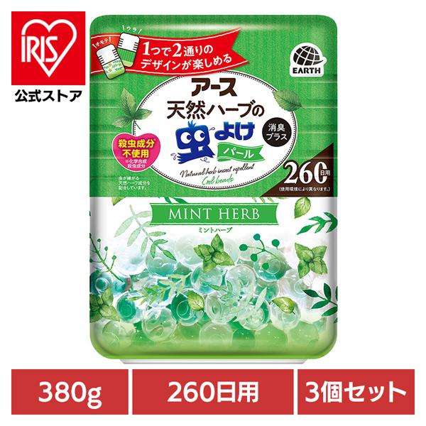 【3個】虫ケア用品 虫除けビーズ 防虫 アース 天然ハーブの虫よけパール ミントハーブ 260日用 380g アース製薬 虫よけ あーす 芳香剤 パールタイプ 大容量 天然ハーブ 消臭プラス