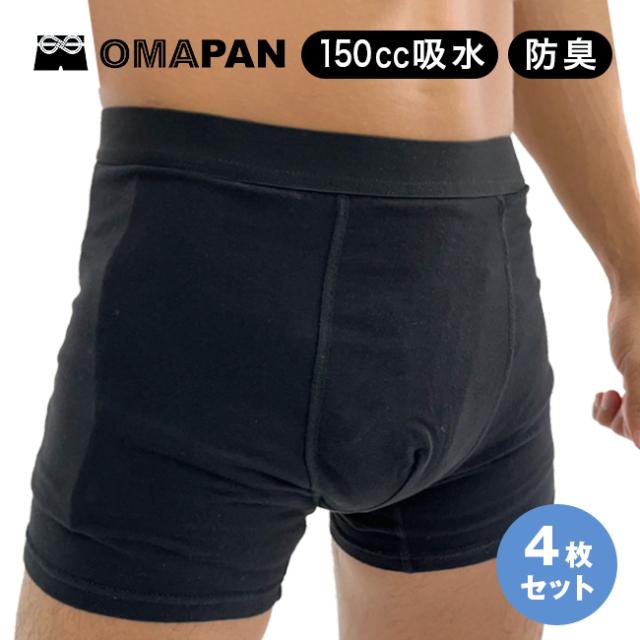 OMAPAN オマパン 《同サイズ4枚セット》(尿漏れパンツ 便漏れパンツ 男性用 防水 防臭 尿漏れ 便漏れ 男性 メンズ 下着 ボクサー パンツ 尿漏れパンツ男性 失禁パンツ 男性用150cc 尿トラブル)【R】