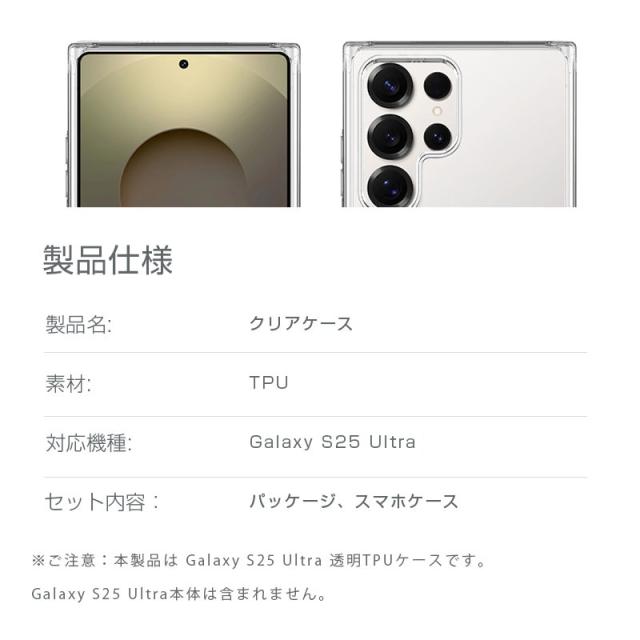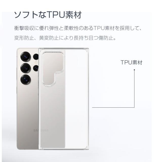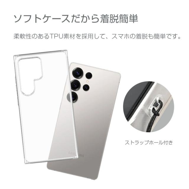 Galaxy S25 Ultra スマホ保護ケース スマホカバー TPU製ケース Samsungスマホ 衝撃吸収 高透明感 疎油撥水 耐摩擦 超薄型 軽量 滑り止め シリコン 柔らかい アンチスクラッチ 高めエッジ設計 ボタンやカメラレンズを保護する スクラッチ防止 脱着簡単 ストラップホール付き
